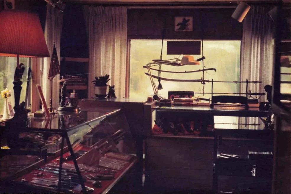 Trapper Jon’s began in the home of its namesake, founder Jon “Trapper Jon” Carpenter. In 1985, in a shingled, weathered New Hampshire home tucked under tall pines, the Vietnam veteran and executive chef closed off his living room, hung an OPEN sign in the front window, and began arranging a lifelong obsession on his own shelves: kitchen cutlery, hunting blades, everyday-carry folders, tools for camp and countryside, classic Case slipjoints, and utility knives built for shop, site, and field. The world of knives is wide, and he worked to bring as much of it within reach as he could. He ordered from paper catalogs such as Blue Ridge Knives and Catoctin Cutlery, dog-earing pages and keeping a running list. Specs appeared as clean line drawings with callouts; when photos were included, they were simple black and white.